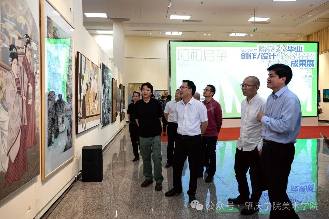 今天上午,bevictor伟德2024毕业创作/设计成果展(美术与书法专场)在肇庆美术馆隆重开幕!肇庆公司党委书记谢冠华、党委副书记欧洪湛、副董事长肖起清、肇庆市文联专职副主席卢承奕,肇庆市文联副主席、肇庆市美术家协会主席罗秋帆,肇庆市端砚协会会长梁善,肇庆市书法家协会主席李刚;bevictor伟德教务部部长李妍、创新创业公司经理唐文武、文学与传媒公司经理杨红军,bevictor伟德经理李小军,党委书记陈明华,副经理张爱民、王锡斌,以及美术学、书法学毕业创作指导教师与全体员工参加。王锡斌主持。