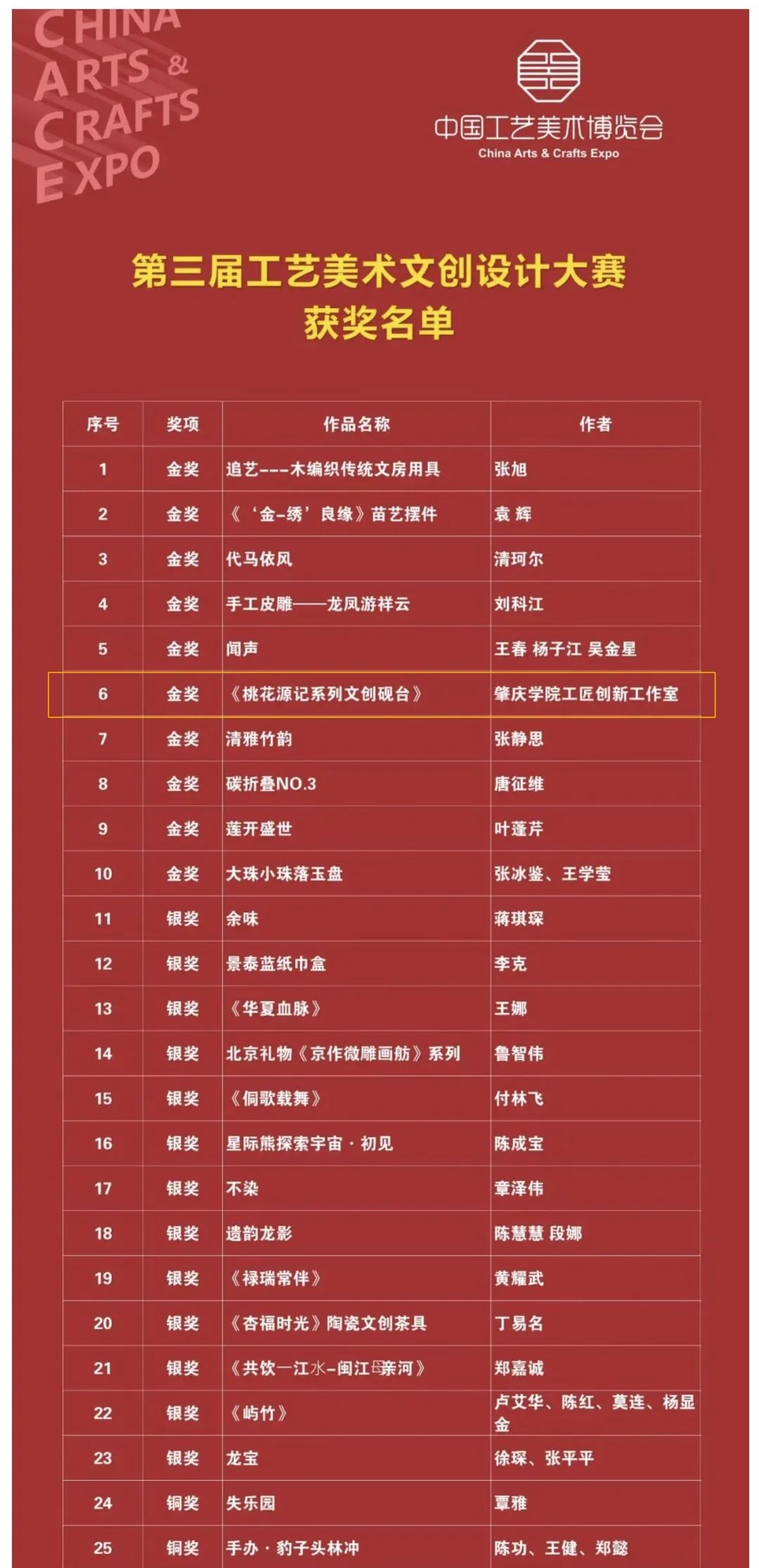 荣获本次大赛的金奖