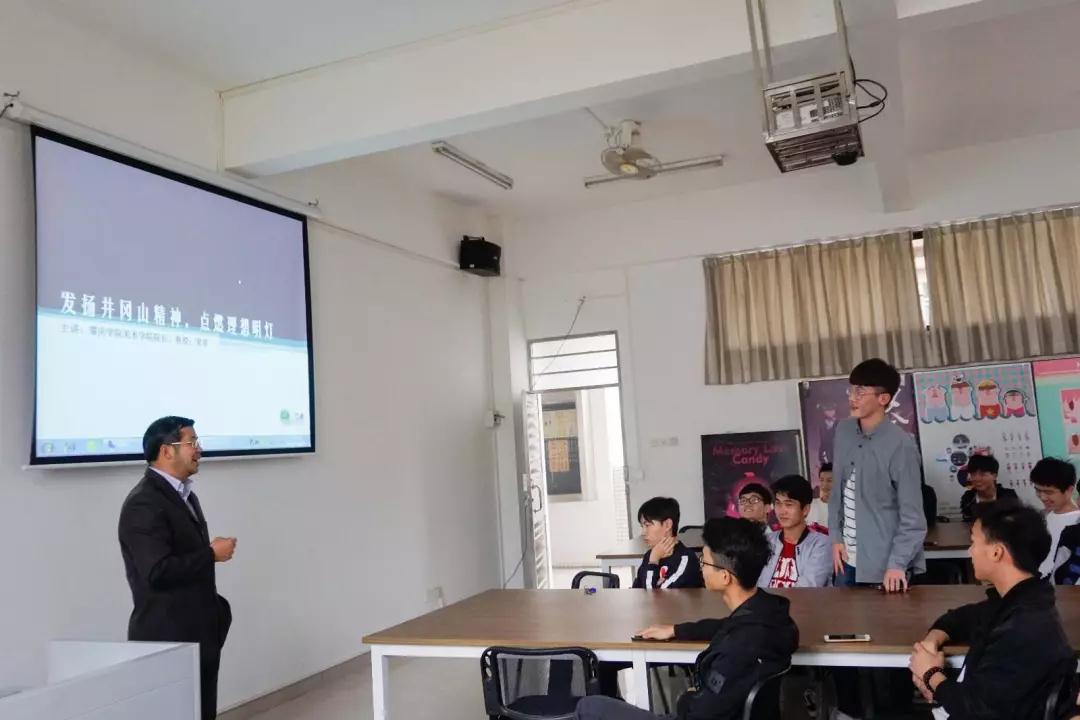 美术公司梁善经理在美术楼408教室以“学习井冈山精神”为主题,为2017级环境设计专业新生上了一堂生动的党课。