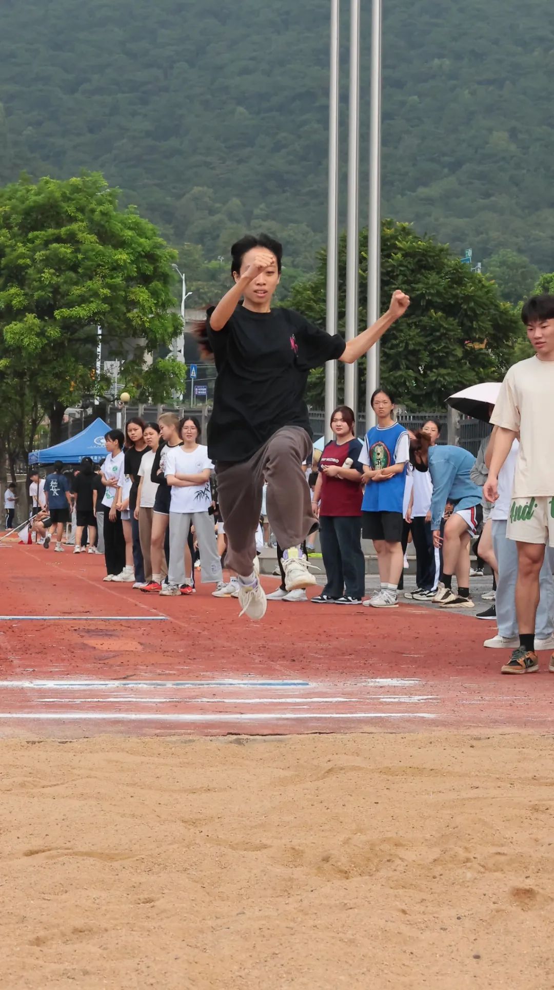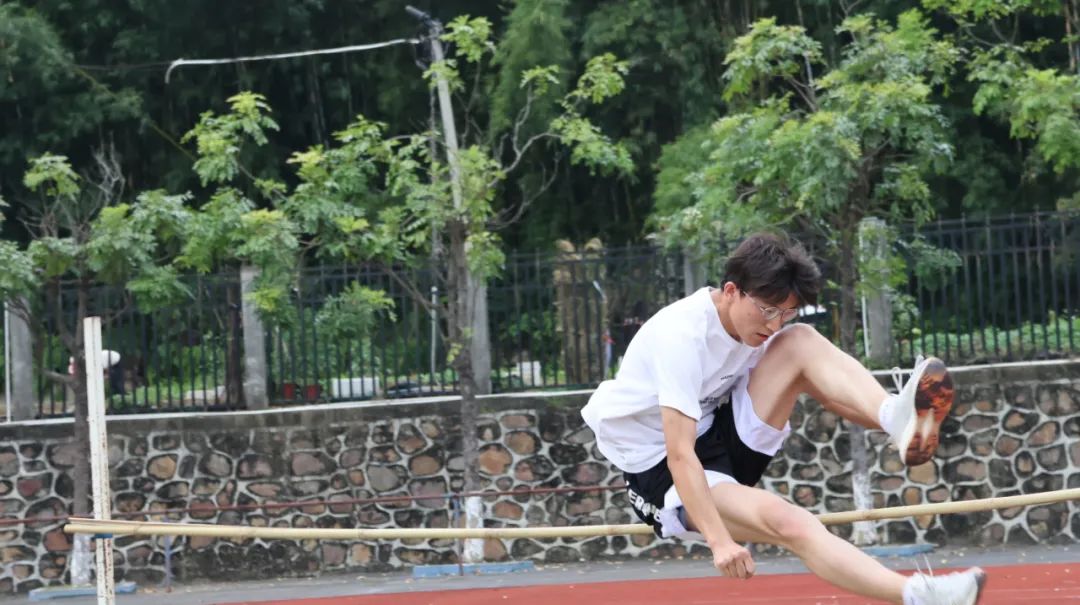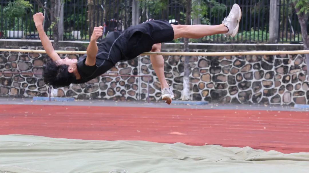 腾空掠杆,稳稳落地。