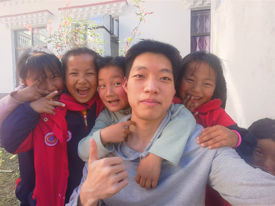 支教队员胡耀中说,美术课堂在员工的整个学习历程中起着重要的作用,其影响力在小学阶段尤为显著。在短短的半个月之内,他就跟这里的小朋友建立了深厚的情感,每次上课之前,所在班级的员工就会跑到办公室邀请老师去班里上课,有时候幸福感就是从身边簇拥着的一个个小脑袋中诞生的。令他印象最深的是一节叫做《五味瓶》的课,课程的主题是“画味道”。胡耀中用彩色卡纸作为道具,让员工将不同的味道对应不同的颜色。经过引导,孩子们学会用抽象的绘画思路来表达自己的感官,最后产出的作品是一个比一个新颖有趣,一整堂课员工和老师都在保持着热情高涨的状态。再那一瞬间,我忽然感受到了作为一名美术老师的喜悦。在校园里,我们课间和孩子们一起打羽毛球,在操场围成一个圈跳锅庄舞,在无尽的欢笑声和读书声中,令我情不自禁想要感恩此时此刻所获得的快乐。支教生活还在继续,真希望时间能过得慢一些,因为这短短一个学期的援藏支教的生活也许可以成为我一生的慰藉。