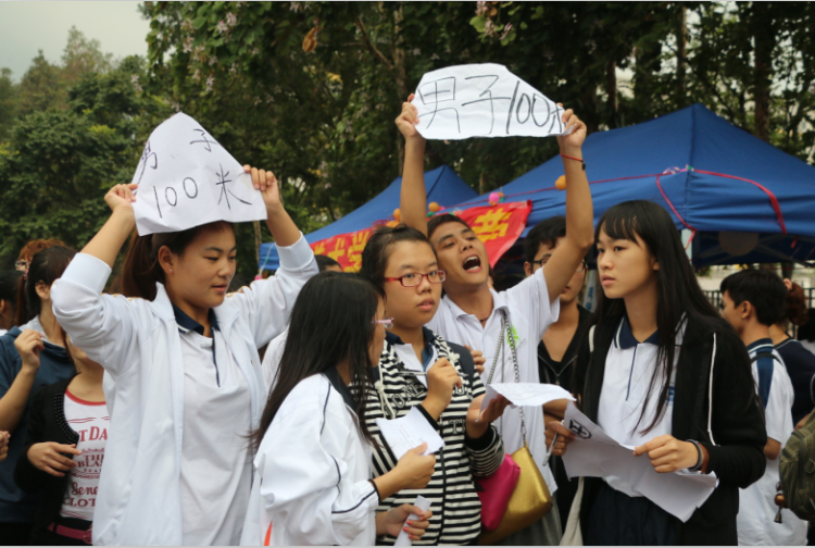 员工机构工作人员在摸黑中工作,惊动了明媚的阳光,天慢慢的亮起来了,田径场早已人头攒动,人群如潮。运动员们整装待发,无疑,他们成了我们关注的焦点。