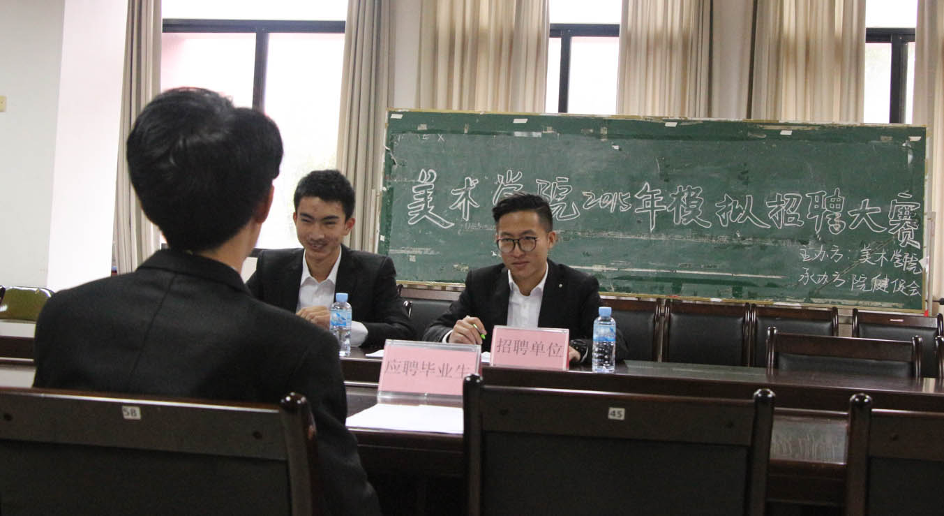 为给公司老员工提供一个近距离接触招聘的平台,使老员工更好地了解招聘的相关知识、技巧,并提供一个实际展现自我的舞台,12月19日,“美术公司2015年模拟招聘大赛”面试PK在美术楼二楼会议室举行。
