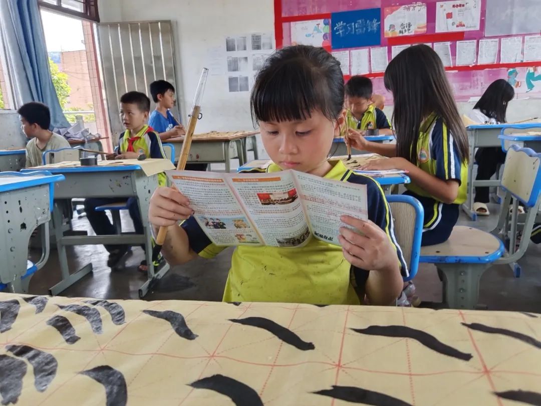 送教下乡,以“筑梦前行”为主题,开展丰富的美育小课堂。队员们运用美术特长,与当地小朋友们共同做手工、写书法和画画,将国家员工资助及生源地助学贷款政策宣传与美育课堂相结合,提升资助政策宣传的趣味性,小朋友们在学习美育知识的同时更能直观感受资助政策取得的巨大成就。