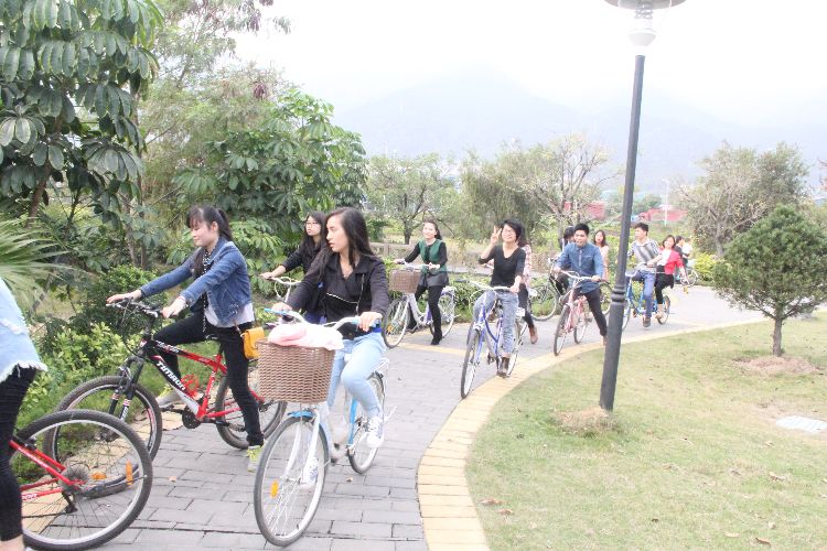 活动中,同学们骑单车从公司后门的北岭山出发,沿着北岭山风景秀美的绿道骑行,途径七星岩北门、波海公园、牌坊广场等肇庆的著名景点,一路欢歌笑语不断。同学们还在波海公园停留,组织的拓展游戏。