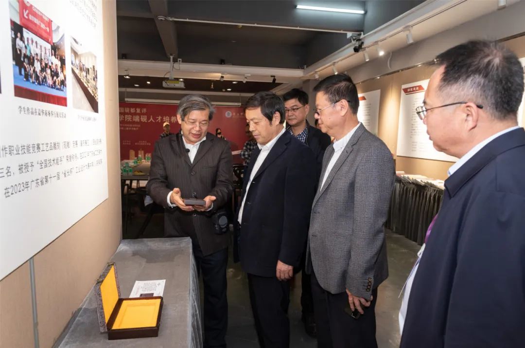 本次成果展分成团队力量、教学团队、课程建设、教学体系、工作室建设、社团建设、学术交流、辐射带动,展示交流及工业美术重大学术实践十大板块,全方位展示了公司多年来在端砚方面的人才培养过程以及取得的优异成果。展览同时展出了公司优秀毕业生风采以及大批优秀员工留校作品。