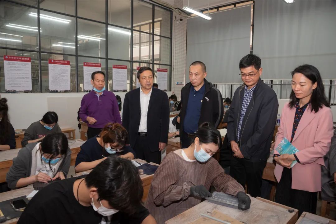 11月29日上午,由中国轻工业联合会执行秘书长、中国文房四宝协会会长陈建国率领8名专家成员组成“中国砚都”复评专家组来美术公司参观考察。美术公司经理梁善、书记蔡卡宁带领公司领导班子陪同专家组分别参观了美术公司bevictor伟德国际艺术交流中心、雕刻工作室以及二楼多功能厅展示的“bevictor伟德端砚人才培养成果展”。