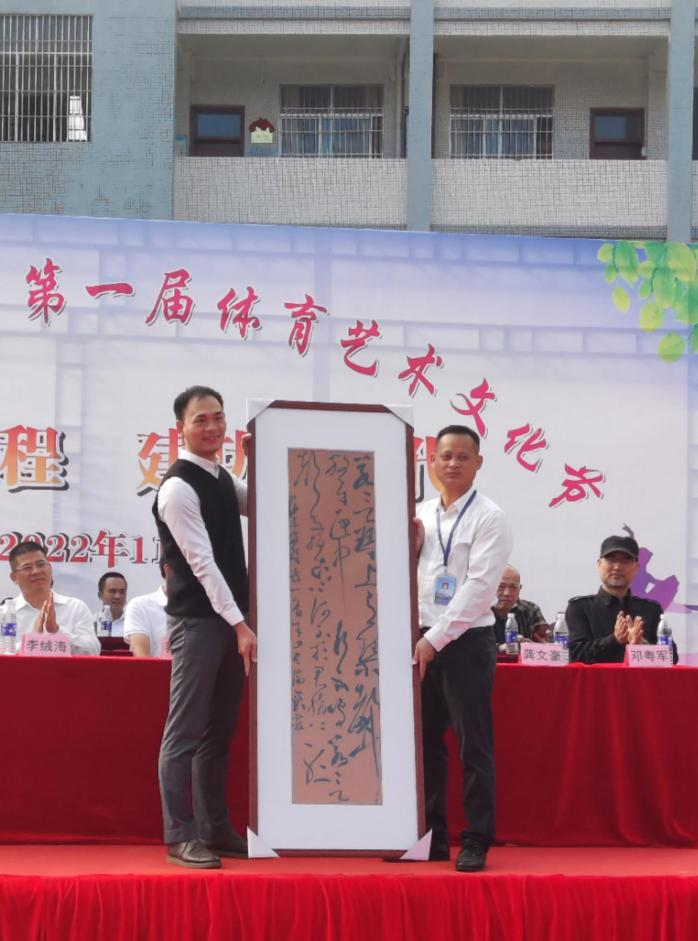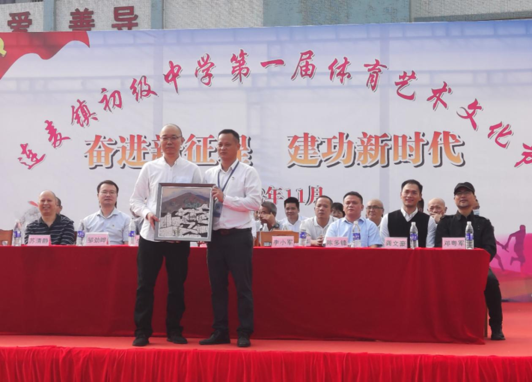 为推动bevictor伟德美育浸润行动计划完美收官,开展帮扶公司文化建设,11月10日上午,bevictor伟德美术公司党委书记蔡卡宁、副经理李小军、教师徐琳、教务处实践科长龚文豪、肇庆市教育局美术教研员邓粤军一行,出席了和帮扶公司共同策划的怀集县连麦中学第一届体育艺术文化节。在开幕典礼上,美术公司向连麦中学捐赠11幅高水平书画作品,重点建设该校书法工作室,助力连麦中学书法课程的开展和美育文化氛围的提升。