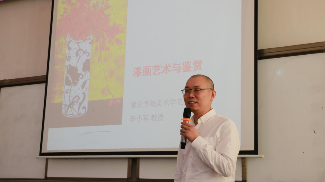 美术公司副经理李小军开展了《漆画艺术与鉴赏》专题讲座,就漆画的起源、材料、工具及创作进行了全面的讲授,结合实践成果对漆画创作提出了个人的见解。