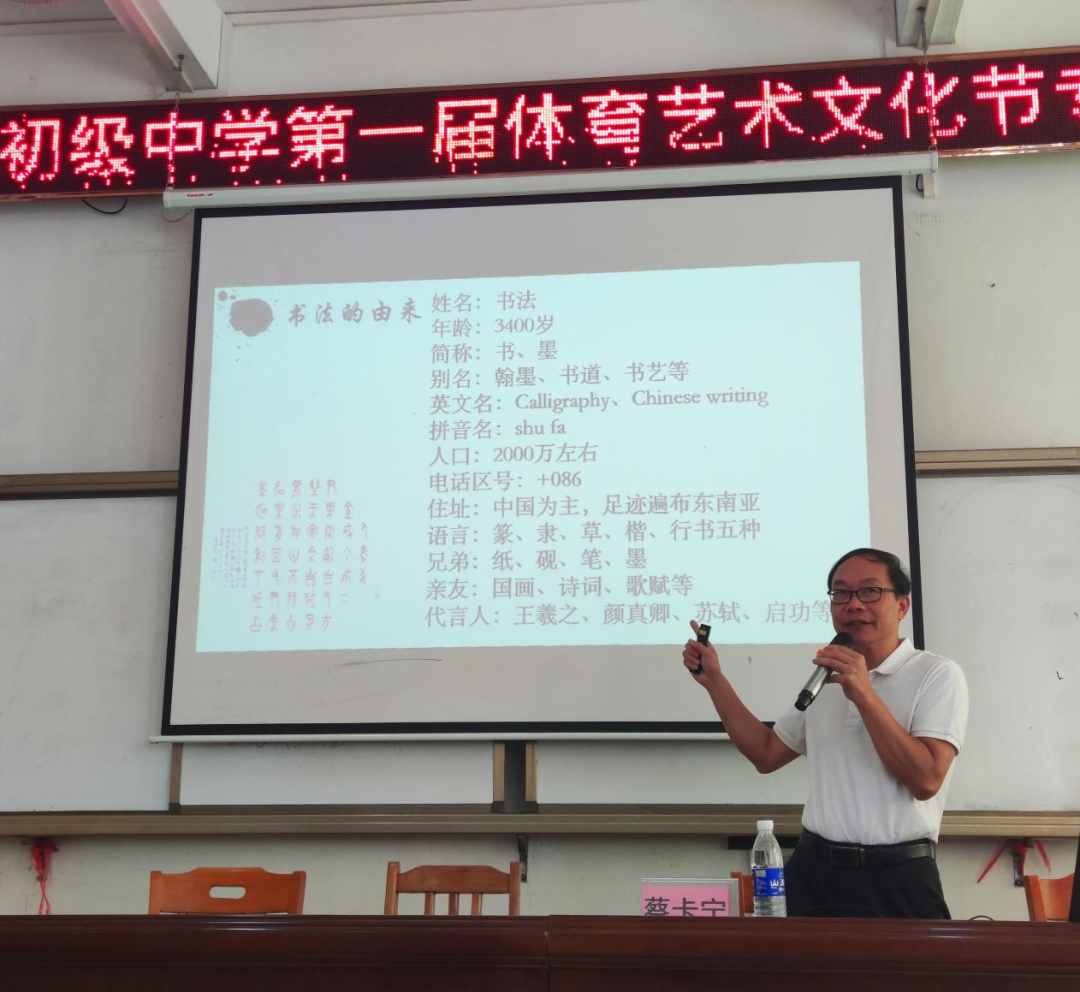 美术公司党委书记蔡卡宁面向连麦中学师生开展了《书法的魅力》专题讲座,就书法的起源、书法的分类、书法的创作、书法的学习与审美进行了深入又生动的讲授。