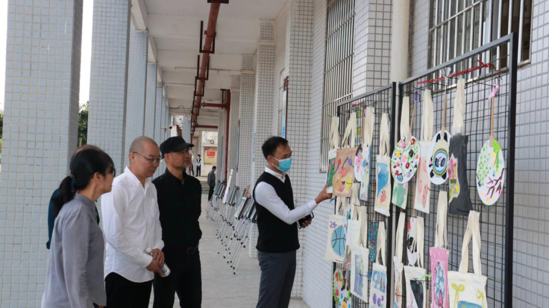 嘉宾参观了连麦中学艺术文化节美术作品展览