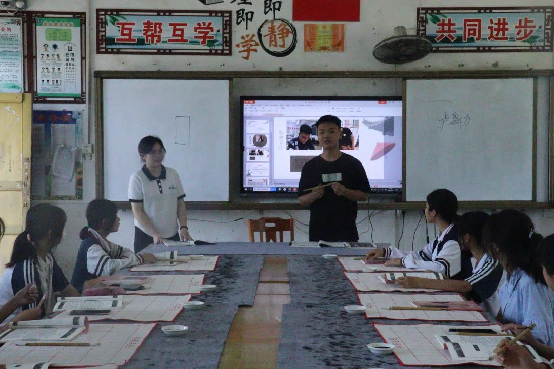 美术公司美术学系主任莫世峰在开营仪式上强调本次“美育浸润行动计划”以美育团队培训、课程教学、课程实践、校园文化建设为目标。美术公司书法专任教师黄焕华作《际遇》一诗,并摘取诗中一句“应是名山入此中”写成作品,赠送给连麦中学,希望员工们能不惧条件的艰苦,奔向更美好的生活和更宽广的学习天地。