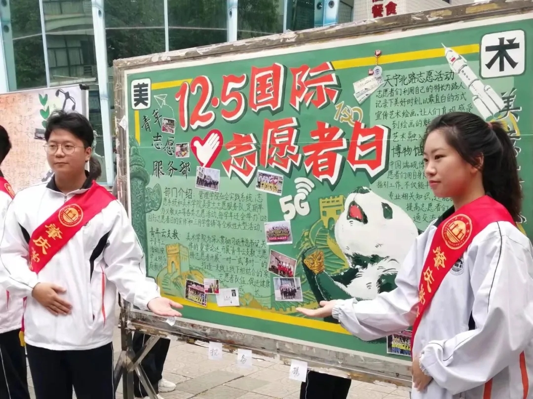 在12·5国际志愿者日到来之际,为更好宣传志愿者精神,美术公司团委青年志愿服务部开始了一年一度的展板策划以及绘画工作,他们“用画笔传递爱心,用真诚点燃希望”。