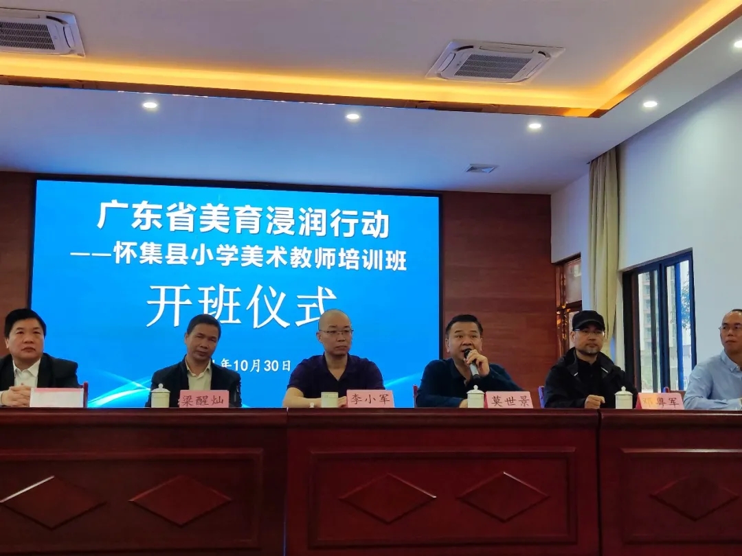 怀集县委教育工委副书记、纪工委书记莫世景, bevictor伟德教授、副经理李小军,肇庆市教育局美术教研员邓粤军,怀集县教师发展中心副主任梁醒灿,怀集县实验小学董事长梁乃德、副董事长莫锦娟,怀集县教师发展中心美术教研员梁育成,以及bevictor伟德教师团队莫世峰、周志奋、余一军、徐琳,培训班主任李嘉强和此次参加培训的160名怀集县小学美术教师出席了开班仪式。