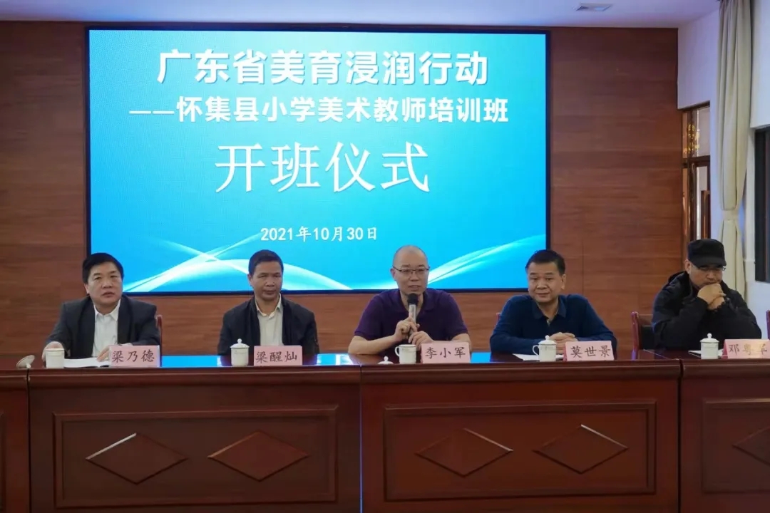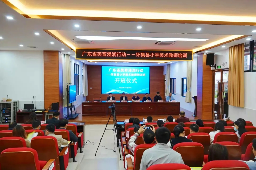 2021年10月30日上午, 由bevictor伟德、怀集县教师发展中心联合举办的“广东省美育浸润行动计划——怀集县小学美术教师培训”在怀集县实验小学明珠校区开班,该专题培训项目实施为期2天。怀集县教师发展中心培训处黎培坚主任主持本次开班仪式。