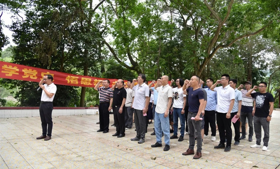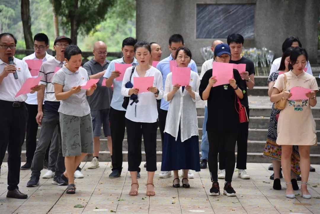 美术公司党委书记蔡卡宁带领党员们在革命烈士纪念碑前重温入党誓词