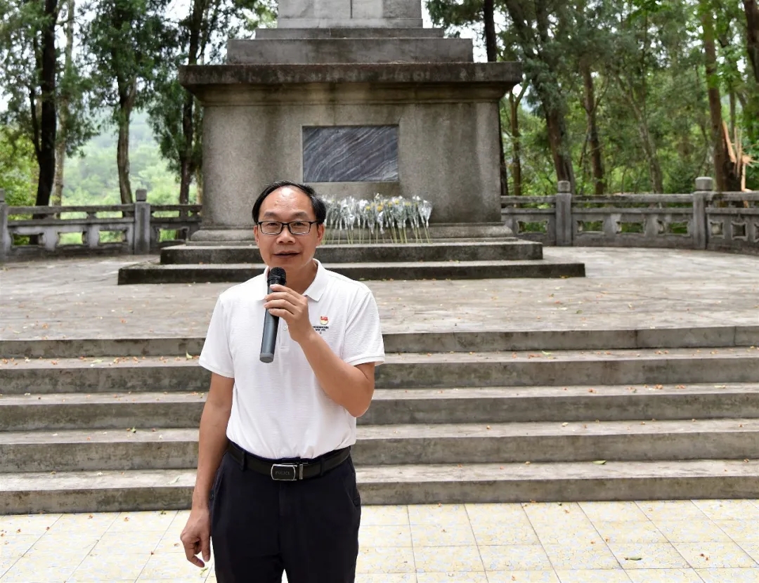 在高要水南分界革命烈士纪念碑前,美术公司党委书记蔡卡宁更是深情地为现场党员讲起了党课!他为党员们讲述了分界革命烈士纪念碑的来历,高度赞扬了革命烈士为中国共产党事业不惜牺牲自己,勇于奉献的精神!动员、号召党员同志们应饮水思源,不忘初心,牢记使命,在一线教师岗位中甘当“孺子牛”,发扬求真务实、埋头苦干、无私奉献、敢于担责的精神,回到公司后进一步带领好其他教师投入到“爱岗敬业,立德树人”中来,牢固树立为员工服务的宗旨意识,时刻把热爱员工,热爱教育作为自己的行为准则,办好人民满意的教育,为美术公司教育事业的发展做出新的贡献!