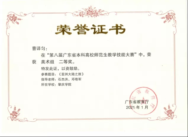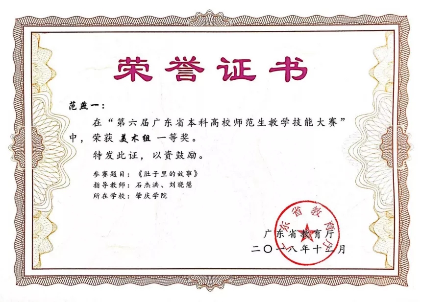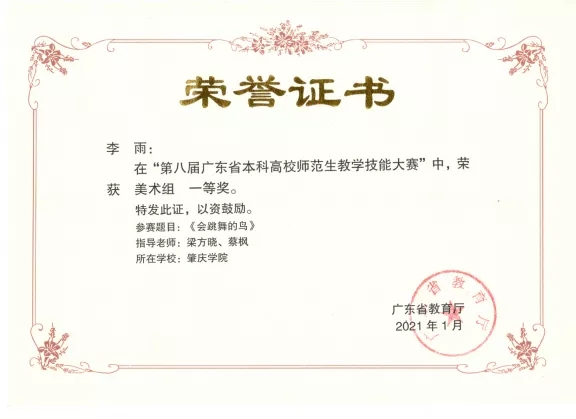 自开班以来,雄才班学员连续四年获得广东省本科高校师范生教学技能大赛一等奖,其中17年的李淑贞、张雅清分别以第一名、第四名获得一等奖,18年的范素薇、李玮姗、范燕一分别以第一、第二、第四名获得一等奖;19年的祝龙、20年的李雨均获得一等奖。