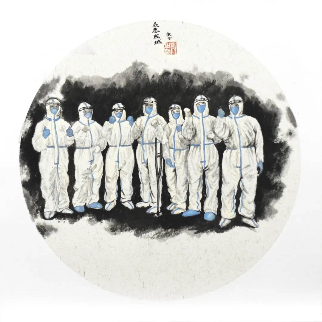 梁善经理:抗击疫情期间,本人以身作则,进行一系列的国画创作,讴歌了奋战在抗击疫情一线的的医生护士的光荣事迹。