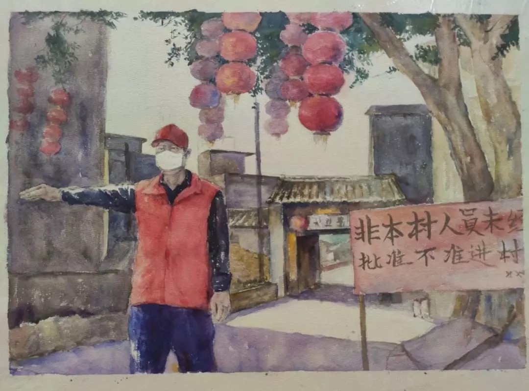 选择这个题材是源自于一位画家的一条朋友圈,上面发了一张写着村口防疫的标语的画和一段话,话的大意是表达了防疫题材的创作角度有很多,没必要大家都是画着同一个人……这条朋友圈不禁让我想起了老师在美术史课上讲的秦宣夫《母教》这个案例,抗战题材可以从平凡的日常生活视角入手,那么这场“战疫”呢?