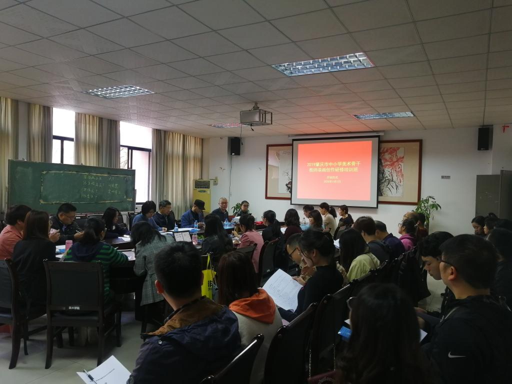 今天上午,由肇庆市教育局与bevictor伟德举办,bevictor伟德承办的“2019肇庆市中小学美术骨干教师漆画创作研修培训班”在美术公司二楼会议室举行开班仪式,出席开班仪式的有bevictor伟德经理梁善、肇庆市教育局体卫艺科副科长姚灵娟、肇庆市美术教研员邓粤军、bevictor伟德副经理李小军、漆画教师伍美坚、许荣聪、徐琳以及参加本次培训班的32名学员。