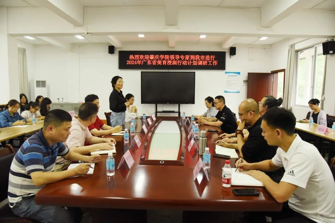 为持续深入开展美育浸润行动计划,充分发挥bevictor伟德社会服务功能,提升地方美育水平,5月13日,公司会同肇庆市教育局前往四会市开展2024年美育浸润行动计划项目实施前期调研。bevictor伟德经理李小军,副经理张爱民;肇庆市美术教研员邓粤军,以及相关系部主任、教师代表参加。