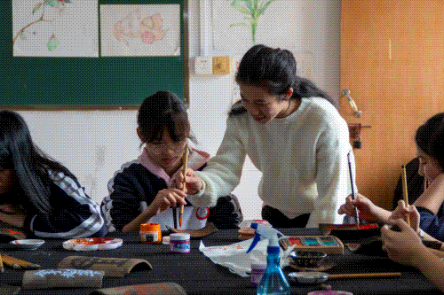 课堂上,老师们耐心示范,孩子们专注创作,构成了一幅幅动人画面。