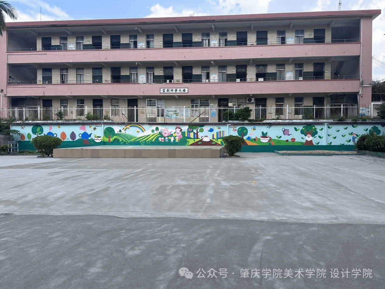 美术公司云城区“校园美化共建”实践团在安塘街道中心幼儿园的围墙彩绘施工后