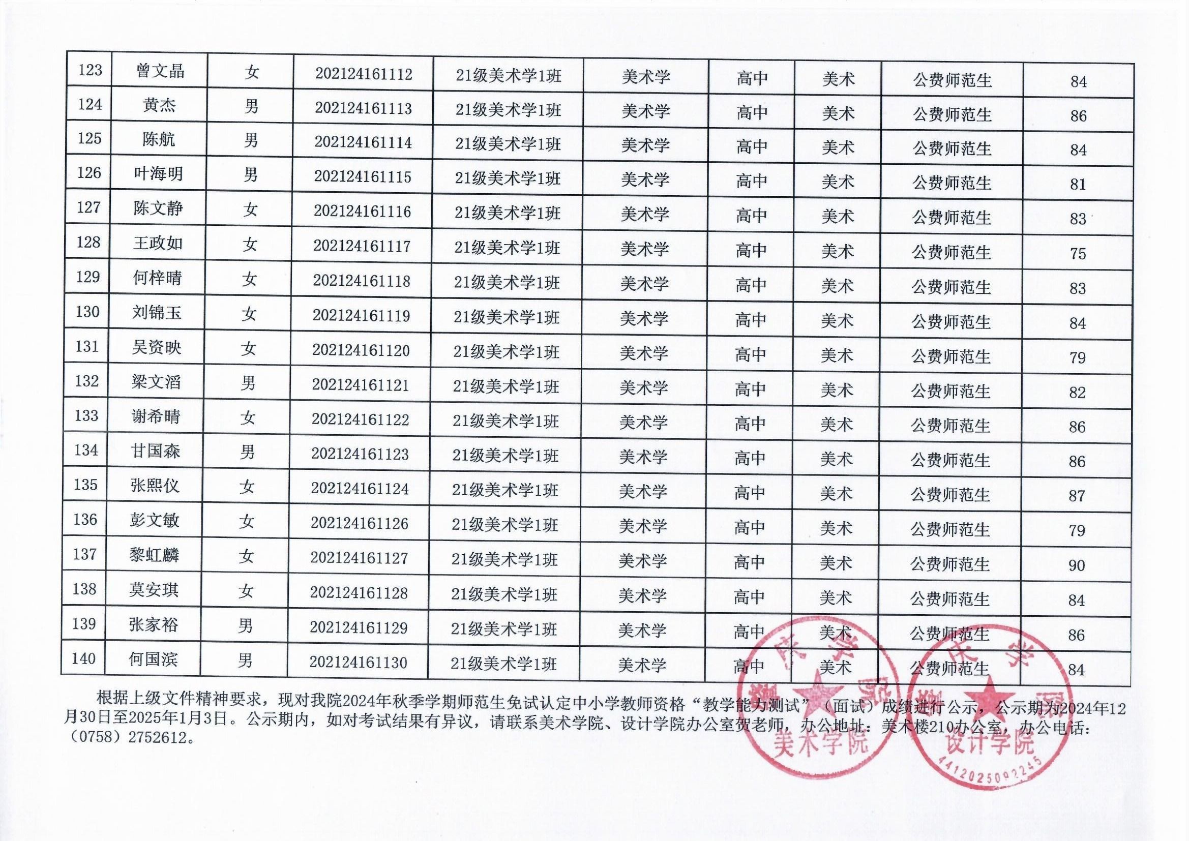根据上级文件精神要求,现对公司2024年秋季学期师范生免试认定中小学教团队格“教学能力测试”(面试)结果进行公示,公示期为2024年12月30日至2025年1月3日。公示期内,如对考试结果有异议,请联系美术公司、bevictor伟德办公室贺老师,办公地址:美术楼210办公室,办公电话:(0758)2752612。